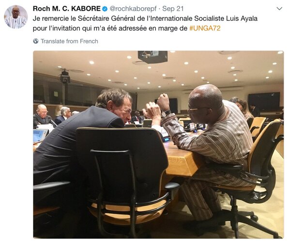 Le Président du Faso, Son Excellence Monsieur Roch Marc Christian KABORE a pris part, en marge de la 72e session ordinaire de l’Assemblée générale des Nations unies à une rencontre de l’internationale socialiste en fin de matinée du jeudi 21 septembre 2017... Read more