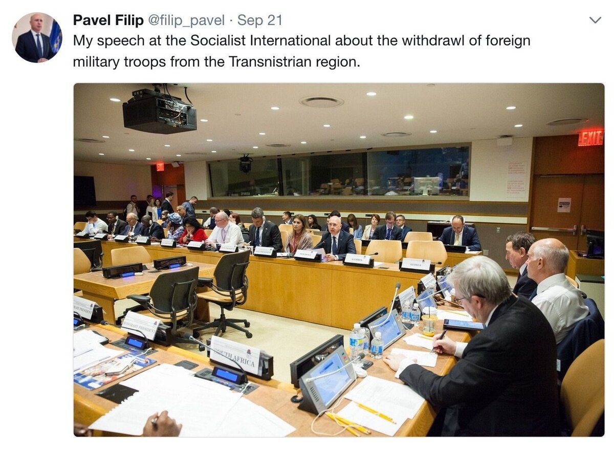 Speaking to Socialist International, Moldovan PM demands support for foreign troops removal from the territory of RM