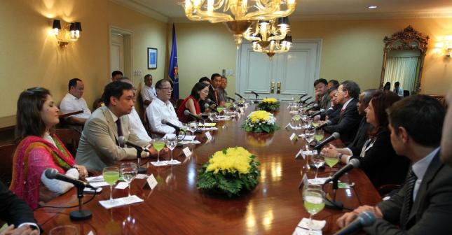 Les discussions ont débuté par une visite du Palais Malacañang pour une réunion avec Président Benigno ‘Noy-Noy’ Aquino, qui a présenté les développements aux Philippines et les priorités de son gouvernement de coalition. Au nom de l’Internationale, le Secrétaire général de l’IS, Luis Ayala, a exprimé l’appréciation de l’organisation des nombreuses questions traitées par le gouvernement qui sont également des sujets importants sur l’agenda de notre mouvement mondial, tels que les droits de l’homme, le renforcement des institutions démocratiques, la lutte contre la pauvreté, la campagne contre la corruption, la bonne gouvernance, l’éducation, la protection sociale et la santé reproductive, et il a souligné la satisfaction de l’IS qu’Akbayan collaborait avec le gouvernement de coalition du Président sur ces sujets. Cette réunion à la Présidence a également été une occasion pour tous les participants de s’adresser directement au Président sur des questions d’intérêt ou d’inquiétude.