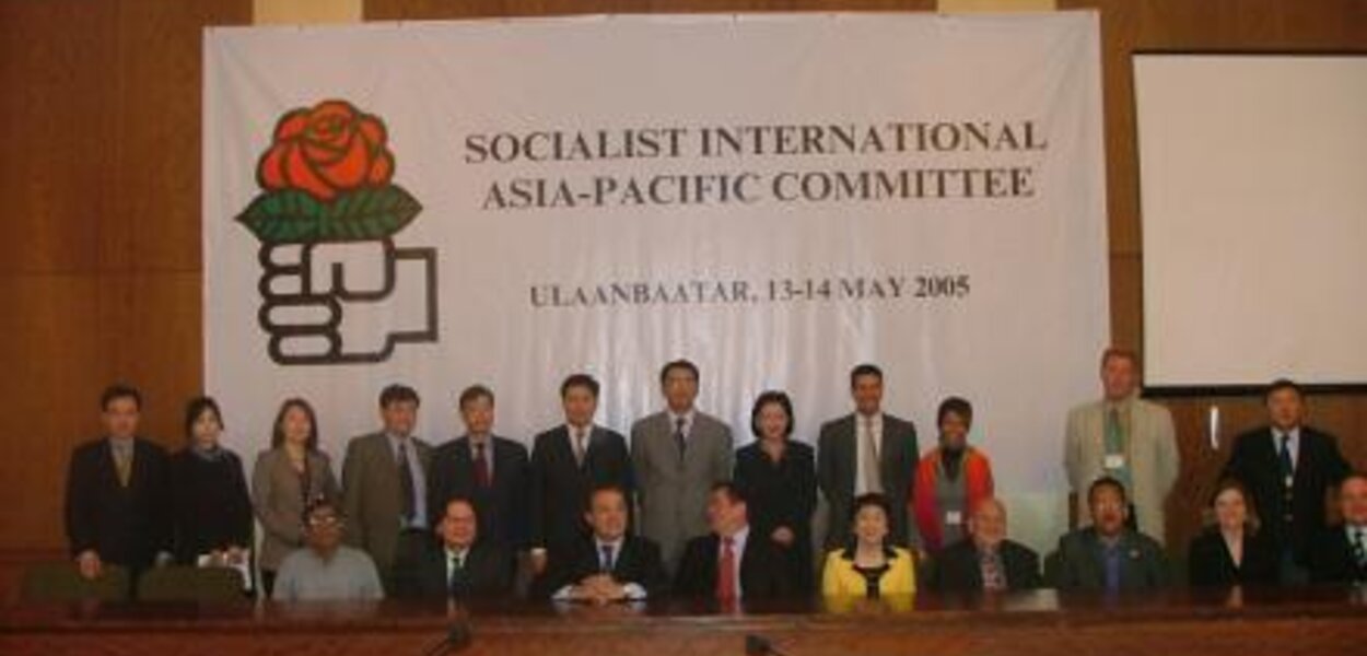 Les 13 et 14 mai 2005, le Comité Asie-Pacifique de l’IS s’est réuni pour la première fois en Mongolie, à Oulan-Bator, accueilli par son parti membre, le Parti Révolutionnaire du Peuple Mongol, MPRP, et son leader et candidat présidentiel Nambar Enkhbayar.