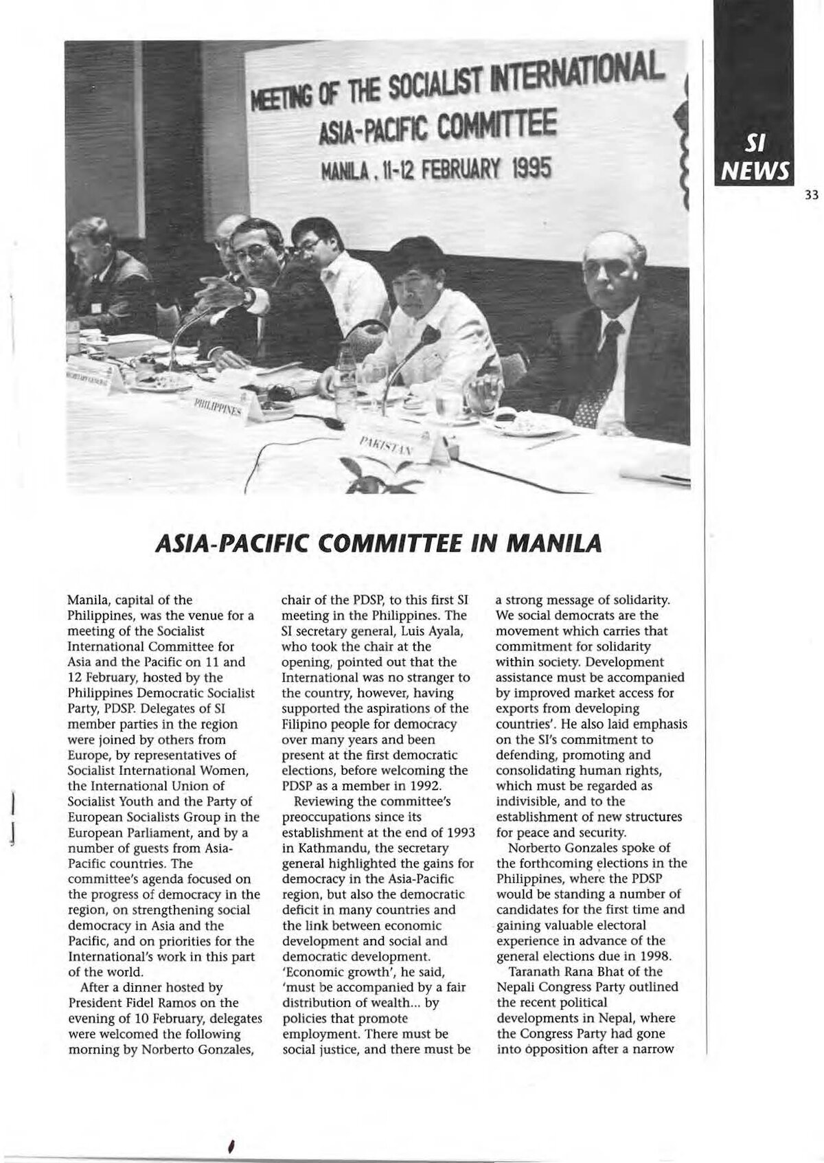 L’Internationale Socialiste tient une réunion de parlementaires des partis membres de l’IS.