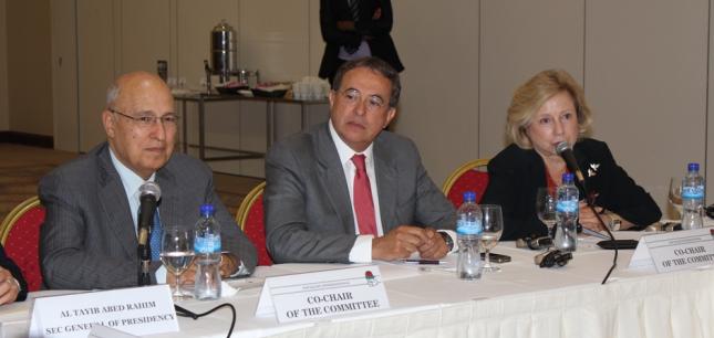 Un message de Président Abbas a été transmis à la réunion par son chef de cabinet, Altayib Abed Rahim. Une présentation sur les colonies et les territoires a été donné par Xavier Abu Eid, équipe de négociations de l’OLP, décrivant la situation en Cisjordanie et la bande de Gaza, et Azzam Alahmed, Fatah, a donné une vue d’ensemble sur la réconciliation entre le Fatah et le Hamas fournissant un aperçu des termes de négociation qui ont mené à l’accord. Le premier intervenant, Nabil Shaath, Fatah, sur l’impasse dans laquelle se trouve le processus de paix et les perspectives pour les négociations palestino-israéliennes, rappela aux participants que les Palestiniens restaient attachés à trois éléments majeurs: retourner pleinement aux négociations pour trouver une solution; la reconnaissance de l’Etat israélien dans les frontières de 1967; et l’engagement pour la non-violence. Alors que le processus de paix avait perdu sa crédibilité et que le discours de Président Obama avait été une source de déception, dit-il, les Palestiniens perdaient espoir qu’un changement majeur aura lieu. Pour rétablir la parité dans les négociations avec Israël, ils cherchaient à obtenir reconnaissance en tant qu’Etat indépendant de Palestine dans les frontières de 1967 et voyaient cela comme la meilleure façon d’aller de l’avant. La Palestine ne cherchait pas à être reconnu comme Etat musulman, ni même en tant qu’Etat arabe, mais simplement en tant qu’Etat indépendant, donnant à son peuple ce qu’il méritait. Mustapha Barghouti, PNI, rappelant les développements qui avaient eu lieu depuis la réunion du Conseil à New York, où une des plus importantes déclarations sur la question du Moyen-Orient avait été faite, souligna l’importance politique de l’accord de réconciliation, affirmant que pour la première fois les Palestiniens étaient unis autour d’un programme, un programme de lutte non-violente, et Président Abbas avait le mandat de parler au nom de tous les Palestiniens. Les discussions se sont concentrées sur les implications d’une reconnaissance éventuelle de l’Etat de Palestine par les Nations unies en septembre et de l’accord Fatah-Hamas pour le processus de paix, un accord qui était perçu par les délégués palestiniens comme restaurant l’unité en Palestine et permettant de retourner aux négociations avec le soutien du peuple palestinien.