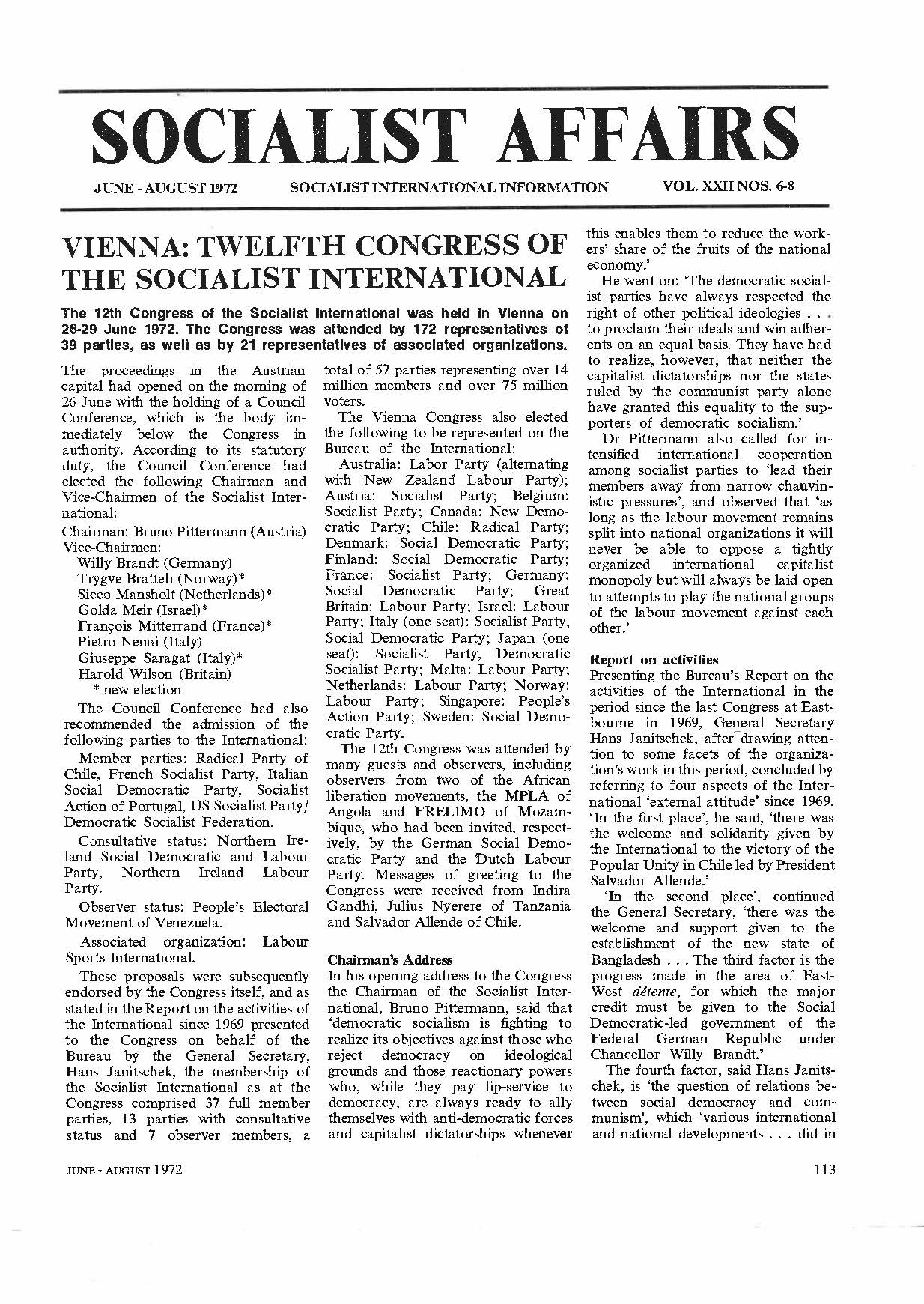 L’Internationale Socialiste établit des Commissions pour aborder des questions mondiales importantes.